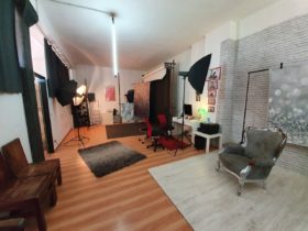 Das Studio selbst besticht auf über 200 m² mit zeitgemäßem Inventar, hochwertiger Technik und professionellen Settings. Der einladende Kundenempfangsbereich und die vollausgestattete Makeup-Ecke sind mit viel Liebe zum Detail eingerichtet und lassen Sie fern vom Alltag in eine Welt eintauchen, in der Sie der Star Ihrer Fotos sind.